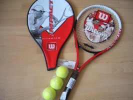 Rakieta posiada pokrowiec oraz oryginalnie naciągnięty naciągdo każdej rakiety 3 piłki do tenisa